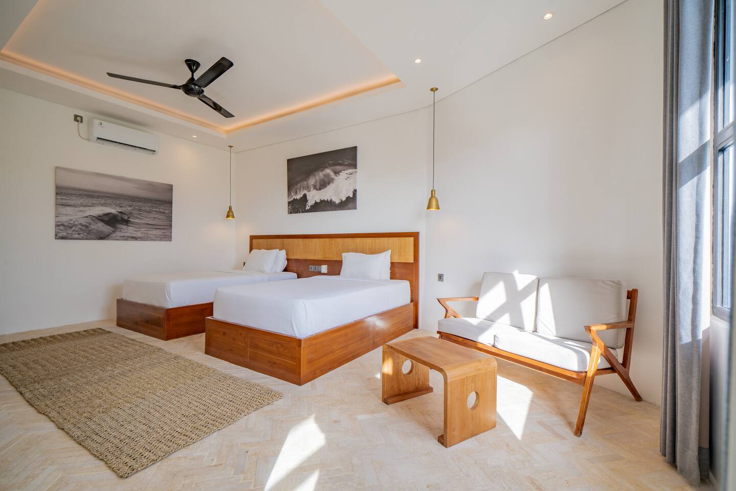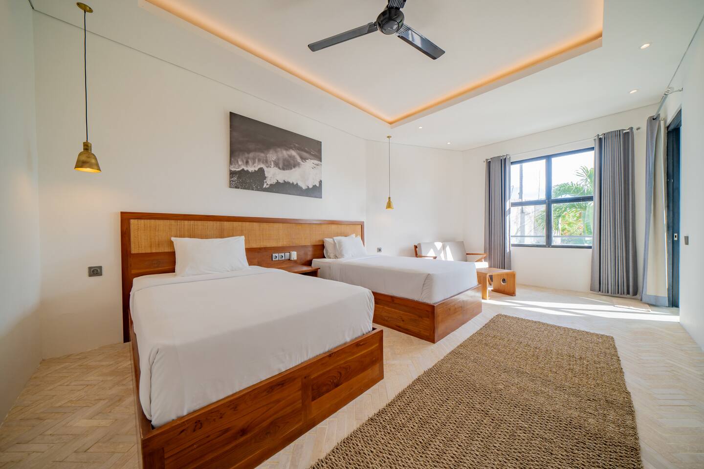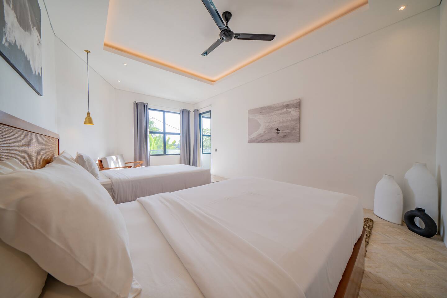 4 big bedrooms with en suite bathroom: - 2 master bedroom with bathtubs - 2 bedroom with normal king size beds and a bunkbed Rooftop with Bar with 180 rice field view Sauna Pool./Billiard table 12m long Swimming Pool 75" Smart Tv in the living room with Netflix TV & AC in all rooms Big Parking space (up to 5 cars) Fully equipped enormous kitchen WIFI - Super Fast 150Mb/s